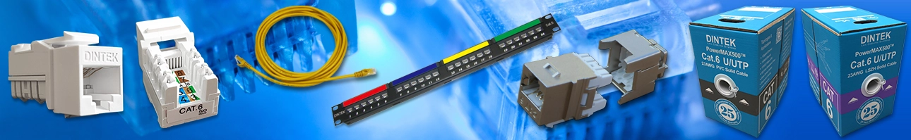 DINTEK PowerMAX500TM Category 6 products are guaranteed to exceed Class E channel specifications as set down in International standards. Our PowerMAX500TM solution comprises Category 6 component compliant patch panels, keystones and patch cords. When combined with DINTEK’s Category 6 UTP cable, an end-to-end channel exists that maximizes data throughput and provides maximum headroom. DINTEK PowerMAX500TM Category 6 products are the perfect solution for your voice and data communications needs.