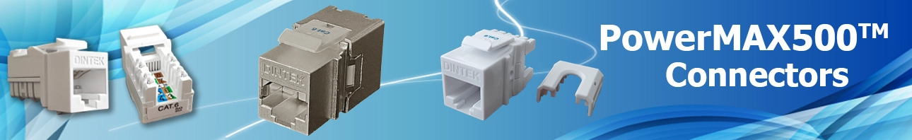 DINTEK PowerMAX500TM ezi-JACK’s are the termination hardware at the heart of the DINTEK PowerMAX500TM and PowerMAX500TM system. Tested and verified to handle the latest PoE Standards IEEE802.3bt Type 3 and 4. And allowing the successful transmission of 10Gigabit ethernet on DINTEK PowerMAX500TM cabling up to a length of 70mtrs.